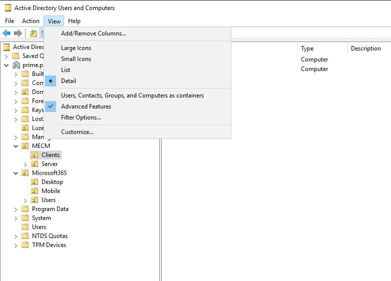 Now that we have downloaded the "tool". We continue in the Active Directory. First we need to check where the client systems are (in which organizational unit) so that we can later configure them with PowerShell.