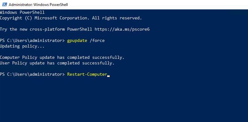 Now update the group policies and restart the system out of habit.