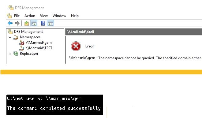 the ability to manage it using the DFS MMC no longer works. DFS is still working for