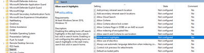 Where is the "Allow search highlights" setting in Administrative Templates?