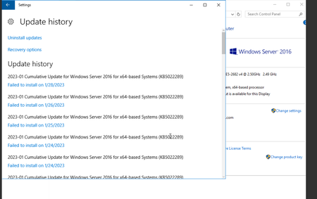 Windows server 2016 cumulative update fail to install for one month