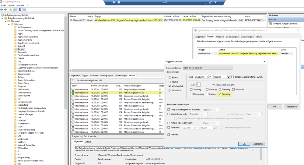 Die Aufgabenplanung eines unserer Storage Server kann die Wochentage nicht auseinander halten. Kennt jemand evtl. dieses Phänomen? Der 16.07.2021 ist/war bei uns in Deutschland definitiv ein Freitag und kein Samstag. 🙂 Betriebssystem Sprache und Region ist "Deutsch"!