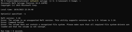 b25951 - ReFS 3.10 volume became RAW, REFSUtil not compatible with v 3.10