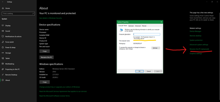 in Windows settings => System => about , on the right side there is a link, "Rename this PC (advanced)", It really needs to be "Rename this Server" instead. because Windows Server 2022 is not a PC, ...