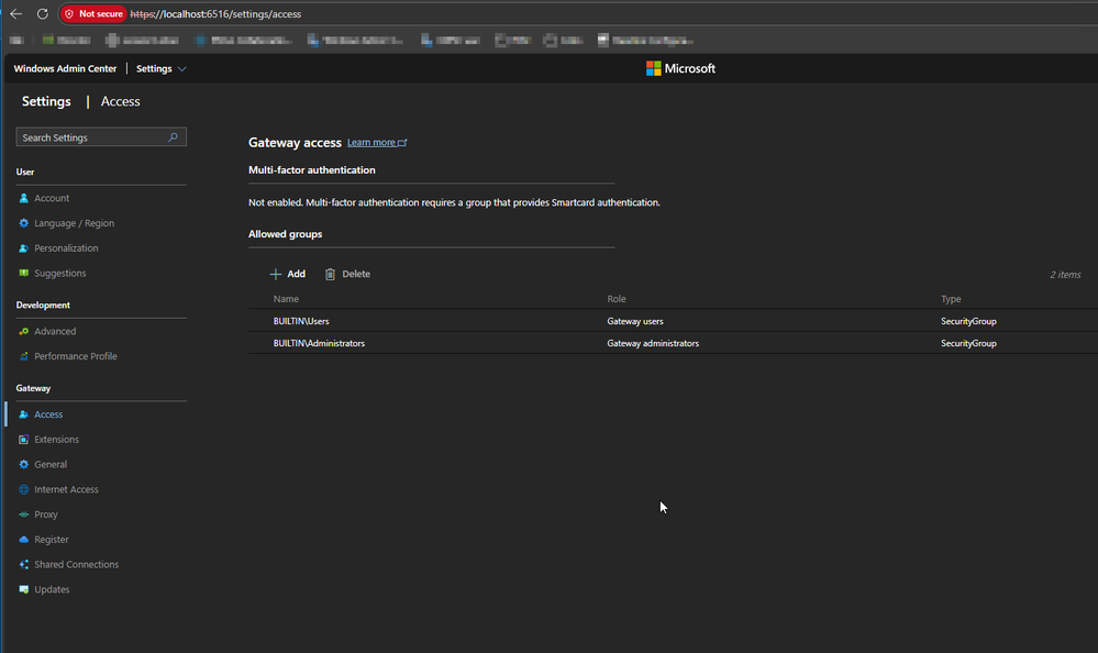 To generate the AccessKey, you may need to navigate to Settings > Access in Windows Admin Center (WAC). If you don't see the option, it might be related to your authentication method or user permissions. You can check Microsoft's official documentation or community discussions for updates: