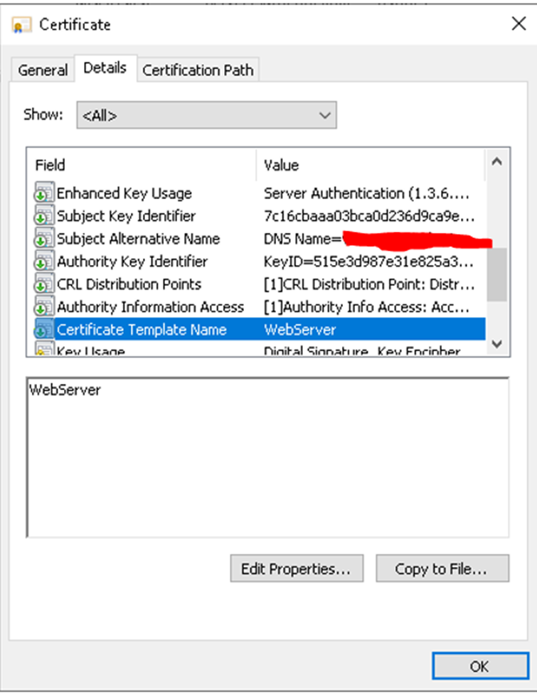 Obviously, that template hasn't given me any problem with other certificates I've generated and am using.