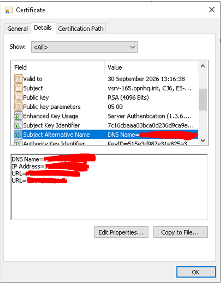 - The certificate must include a valid Subject Alternative Name (SAN).
