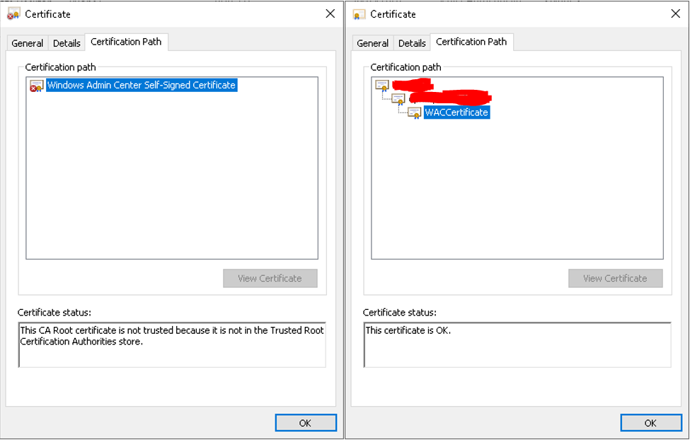 If the EKU is missing or altered in the template, WAC will not load. - The certificate must contain a private key and be stored under LocalMachine\My.