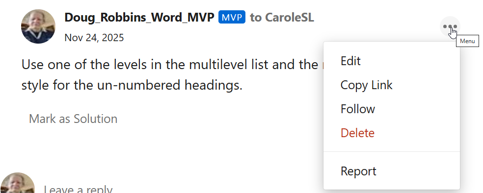 How do you edit posts? Want to add I've got a multilevel list managing headings; I need some headings not to be numbered; those are not in the multilevel list or nav pane.