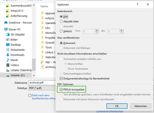 I am trying to save as or export a word document with the option PDF/A compatible. It does not work - i get an error like "We could not find your file..." (in German). Writing to PDF without this o...