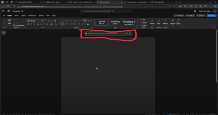 I saw this copilot feature in Word. It is located between the document and the ribbon. It has the default text "Describe what you'd like Copilot to write". It's good to see here: https://youtu.b...