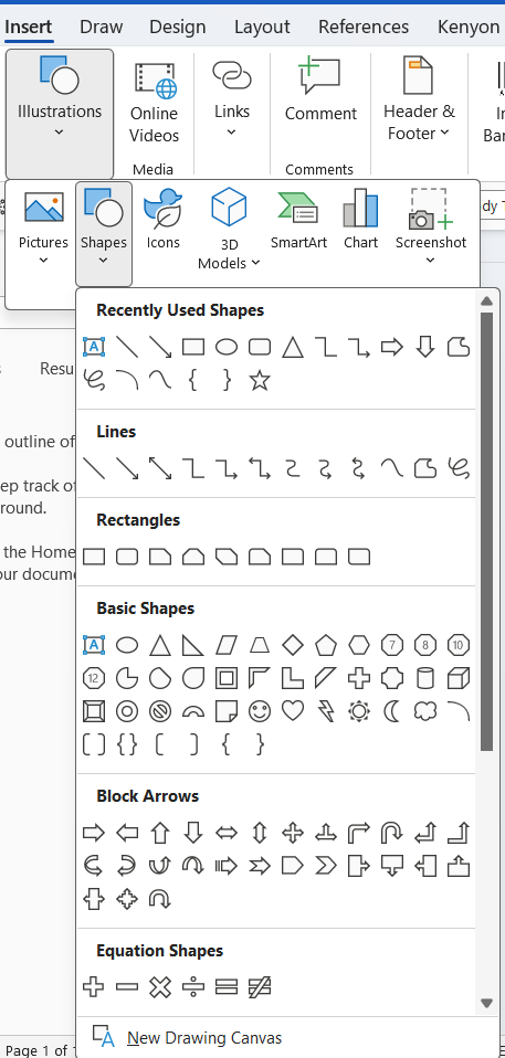Insert > Illustrations > Shape