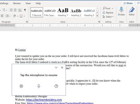 I use Microsoft dictation all the time in word and outlook and recently the dictation toolbar started popping up and it gets in the way of my text. I can move it and close it but it is a nuisance, I ...