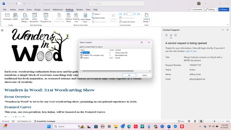 iCloud Outlook Contacts, folders, and WORD Mail Merge