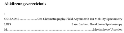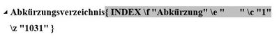 Directory 2 "Abkürzungen" uses the "Index 3" style for the sub-entries and does not require any headings. The following three images show screenshots of the directories, the field function of the directory, and an example entry.