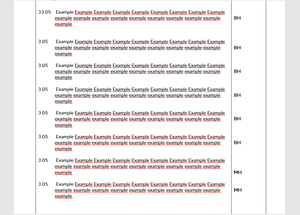 Use a three column table - the first narrow column for the Minute Numbers, a wide middle column for the text (with no indent) and the right narrow column for the initials.