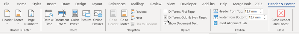 I want the pagenumbers to appear on the left of the text on even pages, and right of the text on oneven pages. Who knows how to get this in Office365