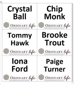 It occurs to me that this may be for inserts to plastic name badges. If so, the simplest method is to print two of the badge and fold in the middle. Otherwise, you are going to spend a tremendous amount of time and effort to try to only use a single badge.