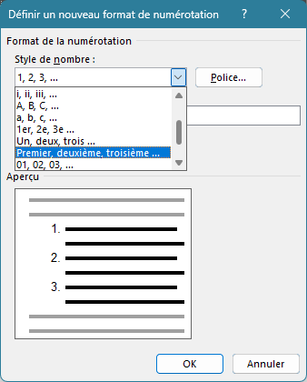 Problème avec liste numérotée