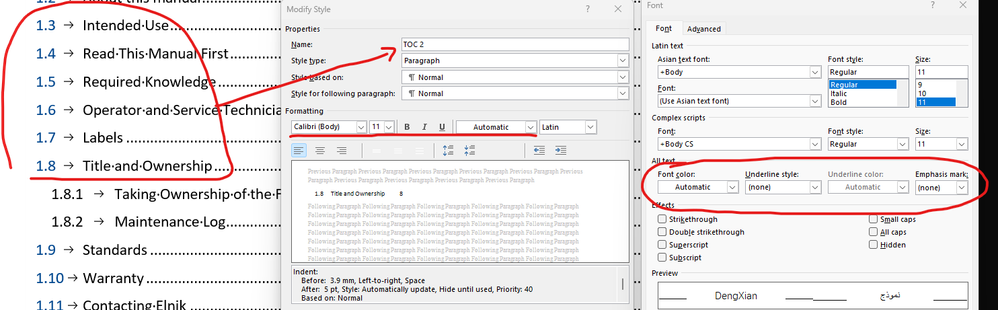 Bottom line, I manually changed the colors of numbers for TOC02. I found it very frustrating.