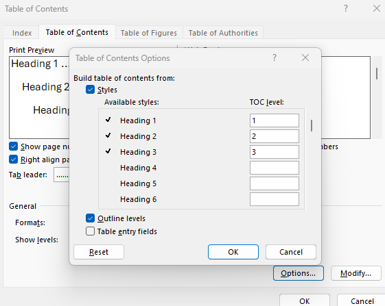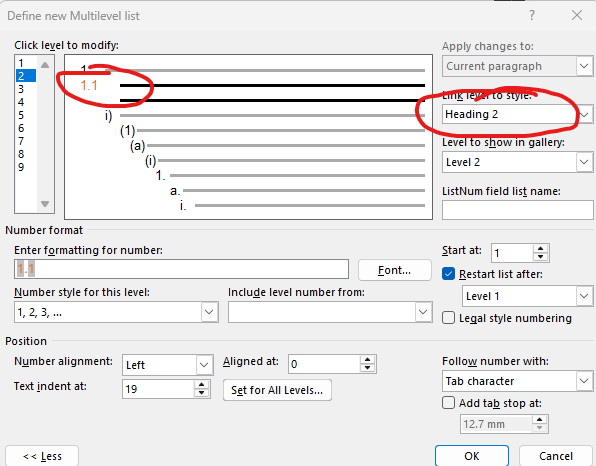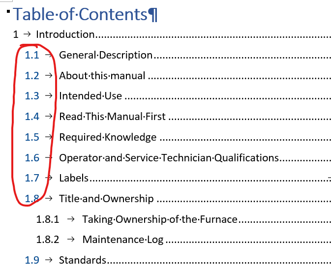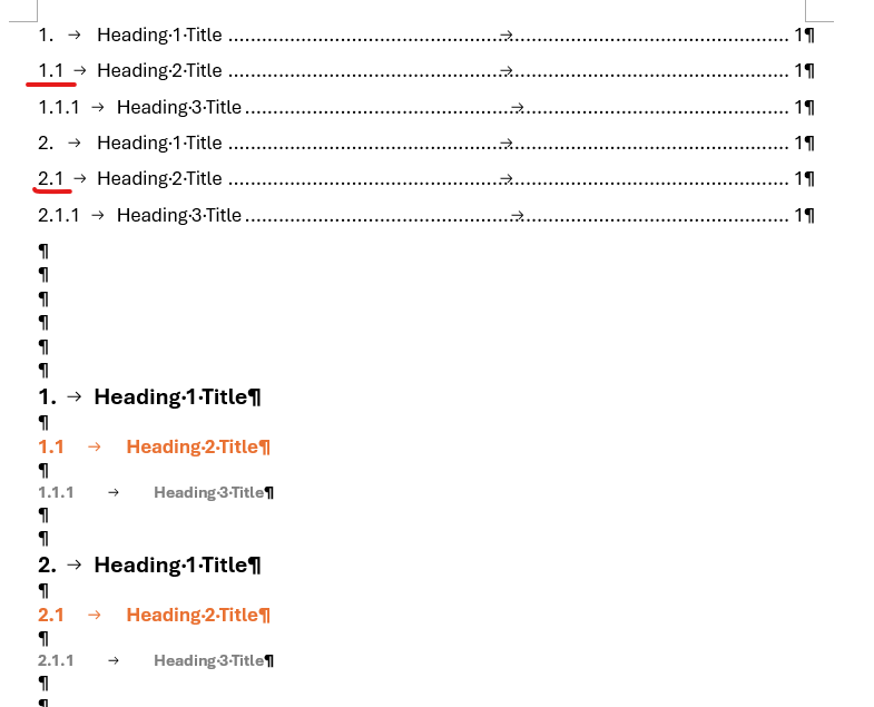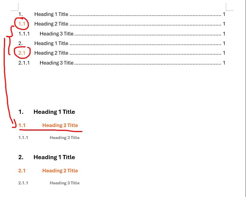 What was I doing wrong? What had I missed? I have been working for years with MS Word. I had never been asked to make numbers in TOC different from one level to another.
