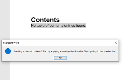 Table of contents does not get updated in my Word document