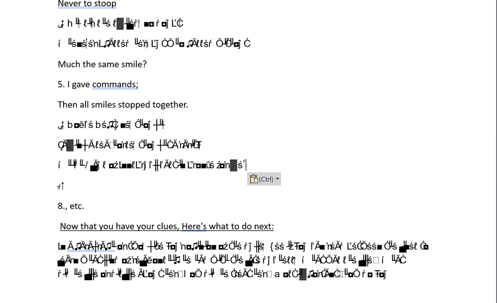Word is randomly turning text from my documents into random characters. This is on Windows 11.