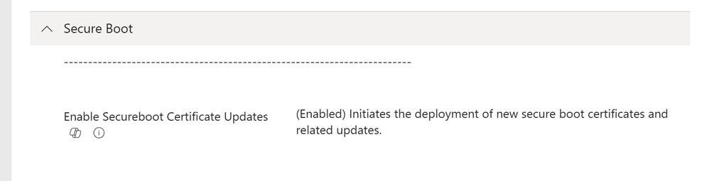 (Enabled) Initiates the deployment of new secure boot certificates and related updates.