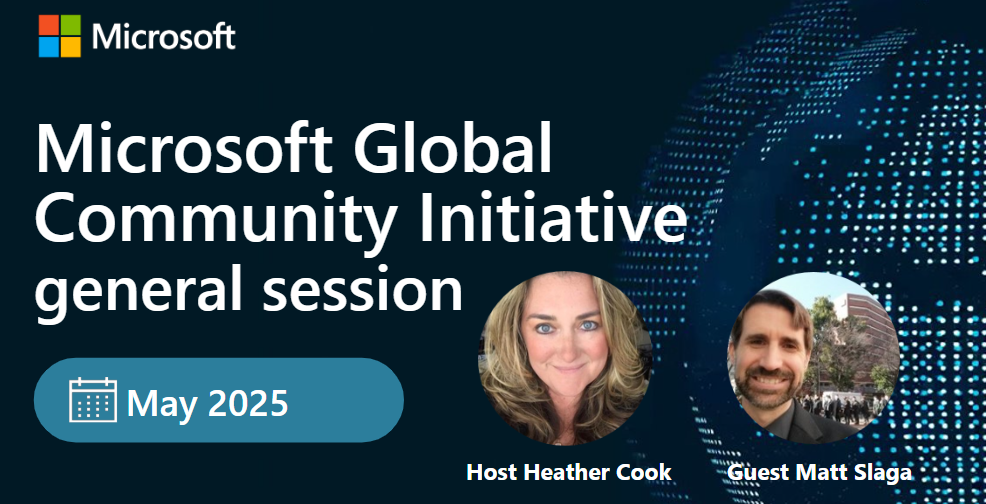Join Host Heather Cook for our Monthly Microsoft Global Community Initiative (#MGCI) General session – and we'd love for you to join the conversation! All are welcome!