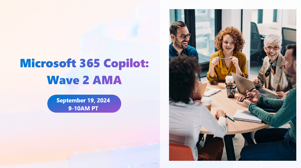 We are excited to announce the Microsoft 365 Copilot: Wave 2 AMA on Thursday, September 19 at 9:00 AM Pacific Time! This is your opportunity to ask our team of experts questions following the big announcements from the Microsoft 365 Copilot: Wave 2 event.