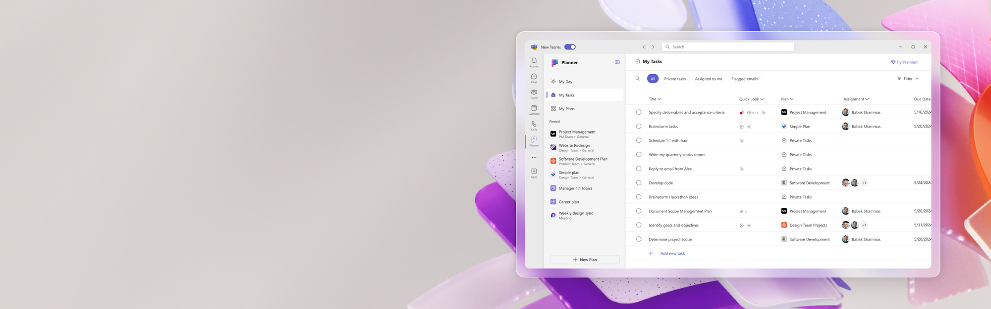 In our Meet the Makers virtual event on April 3rd, leaders from the Planner product team will talk about the latest on the future of task and work management for Microsoft 365. They will explain how the new Microsoft Planner brings together the simplicity of Microsoft To Do, the collaboration of Microsoft Planner, the power of Microsoft Project for the web - with the intelligence of Microsoft Copilot - into a simple, familiar experience.
