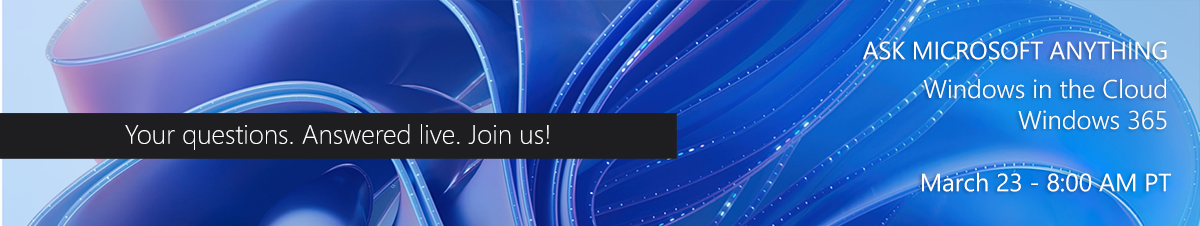 Join us every month with your questions about Windows 365 features, deployment, customization, and best practices. During these one-hour Ask Microsoft Anything (AMA) events, we'll have members of the Microsoft engineering and product teams ready to help and provide answers. Not sure where to start? Watch our Windows in the Cloud web series to catch up on the latest.
