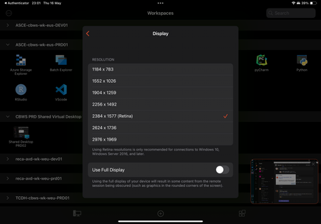 Hi team, On M1 iPad Pro 11, AVD works very well: the display scales correctly to the iPad screen and the cursor is accurate. The ‘Display’ preferences on the M1 iPad Pro also indicate ‘retina...