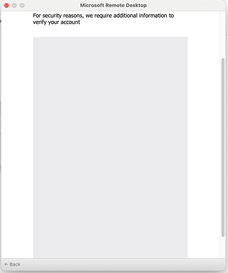 Hi, I am NOT able to connect the Windows workspace, but the same machine is connecting fine in a Windows machine Remote Desktop. But in Mac mini when I try the same, the popup that accepts the OT...