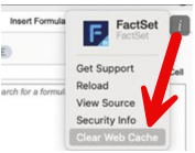 Currently JavaScript add-ins that are installed in Desktop Excel for Mac offer a 'Clear Web Cache' menu item within the Task Pane.