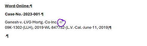 - Observe that Word Online displays gray boxes in the document where TA field codes with LineBreak.