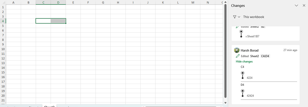 This concern is raised because when using Excel's built-in Review → Show Changes, it correctly tracks before and after values for the same range "CD:C4".
