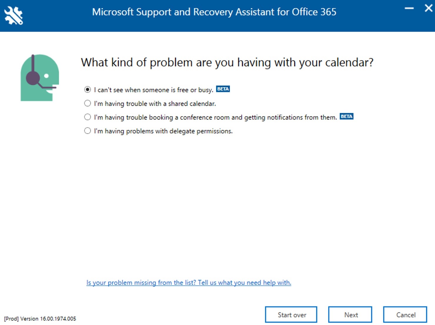 Open SARA and select Outlook scenario, click Next, then select I’m having problems with my calendar, input email address and password of the source mailbox (cloud mailbox if direction not working is cloud > on-premises) and then select I can’t see when someone is free or busy.