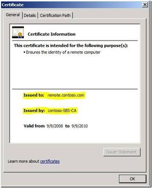 First published on TechNet on Dec 14, 2009 [Today’s post comes to us courtesy of Mark Stanfill] The SBS Add a Trusted Certificate wizard may fail to display a certificate that is correctly installed in the certificate store if the subject field of the certificate is missing.How to Obtain the Certificate Distribution Package in SBS 2011 Standard through Remote Web Access