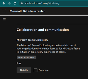 Hi! We have tried to add Teams Exploratory licence to test tenants that we have created on that week. And no success. We fit the criteria provided in the documentation https://learn.microsoft.com/en-us/microsoftteams/teams-exploratory. And we didn't see any official new from MS about deprecation of Teams Exploratory subscriptions. It's strange situation. When we tried to open https://teams.microsoft.com to obtain Exploratory trial it was redirected to the url https://teams.microsoft.com/_#/licenseError?errorCode=UserLicenseNotPresentTrialEligible. So, we are eligible to obtain Exploratory but can't add to the tenant. And it's not possible to add via admin center https://admin.microsoft.com/#/catalog. Direct link is not accessible.1.7KViews1like1CommentMicrosoft Teams Exploratory end date
