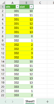 I have a data like below sfn can range from 0~1023, and then again start with 0, slots can range from 0~19 I want to highlight the rows like below:- so, 331.12 is repeated in ROWS(4,5) so highlighted in Yellow, 331.13 is repeated in ROWS(6,7) so highlighted in Yellow and so on. if any Conditional formatting or anyother logic, by which we can highlight these data , would be helpful. Worksheet attached. Br, Anupam25Views0likes2Commentspower query/ dax measure , multiple conditions/ multiple answers