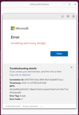 Dear community members, We use Intune managed computer and Zscaler that delivers DNS Search Domain. When user type a https://go/links in Edge browser, it automatically appends the FQDN to the address bar to become https://go.mycompanydomain.com/links. It is a quite common practice for Enterprise to provide convenience to access internal shortened URLs. With Intune managed mobile (also has Zscaler), can we achieve the same goal for Edge mobile? For the mobile use case, it is less of typing the go links directly in the browser. Because there are a lot of go links shared in Email and Chats from communications and newsletters, when user click them in Outlook or Teams on the phone, it will open in Edge. I am hoping when Edge opens these links, it automatically appends the search domain like on computers. I have looked up all Intune device and Edge documentation, chatted with three different LLMs, couldn't figure out a solution. All ideas are welcome! Thanks. Best regards,Solved77Views0likes1CommentUbuntu 24.04 LTS + Entra ID Authentication + Intune Enrollment