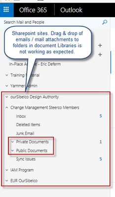Does the Suggested Meeting add-in work for anyone? In my O365 Outlook settings page, I have enabled the Suggested Meeting add-in but it does not do anything when an email arrives with a time and date. The Action Items add-in does work as expected. The instructions at https://support.office.com/en-US/article/Using-Add-ins-in-Outlook-on-the-web-8f2ce816-5df4-44a5-958c-f7f9d6dabdce describe what should be happening, but nothing does. How can I get this working?7.2KViews0likes0CommentsOutlook Web Access - Drag & drop of mail attachments or mails to SP site