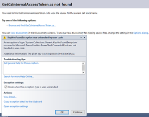 I am trying to run cmdlets from powershell module MicrosoftTeams (version 2.0.0) in a C# web application. I am using Authorization code flow and code from the answer provided in this post to acquire token: https://stackoverflow.com/questions/43488511/acquire-aad-token-using-asp-net-web-forms. Note: I had changed resource in the code to graph.windows.net to acquire AAD token. Token is acquired by using AuthenticationContext.AcquireTokenByAuthorizationCodeAsync method. Once the token is acquired, I run the following lines to create a powershell instance in C# and to import MicrosoftTeams Module. PowerShell pshell InitialSessionState iss; iss = InitialSessionState.CreateDefault2(); iss.ImportPSModule(new[] { "MicrosoftTeams" }); pshell = PowerShell.Create(iss); Then to connect with MicrosoftTeams, I run the following code: var connectCmd = new Command("Connect-MicrosoftTeams"); connectCmd.Parameters.Add("AadAccessToken", AccessToken); connectCmd.Parameters.Add("AccountId", "xxxxxxx@xxxxxx.onmicrosoft.com"); pshell.Commands.AddCommand(connectCmd); var result1 = pshell.Invoke(); Code works fine till here. After this I clear the shell commands and invoke the Get-CsTeamsCallingPolicy cmdlet: pshell.Commands.Clear(); pshell.Streams.Error.Clear(); pshell.AddScript("Get-CsTeamsCallingPolicy"); var result2 = pshell.Invoke(); After Invoke, I get an exception and this dialog pops up: Pressing 'Continue' brings back the same dialogue a couple of times. Exception details from this screen are: System.Collections.Generic.KeyNotFoundException was unhandled by user code HResult=-2146232969 Message=The given key was not present in the dictionary. Source=mscorlib StackTrace: at System.Collections.Concurrent.ConcurrentDictionary`2.get_Item(TKey key) at Microsoft.TeamsCmdlets.Powershell.Connect.Models.AzureSessionProvider.GetAccessToken(String resource, IEnumerable`1 scopes) in D:\a\1\s\src\Microsoft.TeamsCmdlets.PowerShell.Connect\Models\AzureSession.cs:line 80 at Microsoft.TeamsCmdlets.Powershell.Connect.TeamsPowerShellSession.GetAccessToken(String resource, IEnumerable`1 scopes) in D:\a\1\s\src\Microsoft.TeamsCmdlets.PowerShell.Connect\TeamsPowerShellSession.cs:line 82 at Microsoft.TeamsCmdlets.PowerShell.Connect.GetCsInternalAccessToken.ProcessRecord() in D:\a\1\s\src\Microsoft.TeamsCmdlets.PowerShell.Connect\GetCsInternalAccessToken.cs:line 61 at System.Management.Automation.CommandProcessor.ProcessRecord() After pressing continue for the 3rd time, control goes back to C# code, and I receive the following runtime exception: Exception calling "GetSteppablePipeline" with "1" argument(s): "Exception calling "GetRemoteNewCsOnlineSession" with "1" argument(s): "Run either Connect-MicrosoftTeams or new-csonlinesession before running cmdlets."" Trying to run this logic from the powershell editor shows similar behavior: Running the following two lines: $AccessToken = 'xxxxxxxxxxxxxxxxxxxxxxxxxxxxxxxxxxxxxxxxxxxxxxxxxxxxxxxxxxxxxxxxxxxxxxxxxxxxxxxxxxxxxxxx' Connect-MicrosoftTeams -AadAccessToken $AccessToken -AccountId 'xxxxxxx@xxxxxx.onmicrosoft.com' gives this result: Account Environment Tenant TenantId ------- ----------- ------ -------- xxxxxxx@xxxxxx.onmicrosoft.com AzureCloud xxxxxxxx-xxxx-xxxx-xxxx-xxxxxxxxxxxx xxxxxxxx-xxxx-xxxx-xxxx-xxxxxxxxxxxx I then run Get-Team cmdlet: Get-Team -User xxxxxxx@xxxxxxx.onmicrosoft.com which results in this message: Get-Team : The given key was not present in the dictionary. At line:1 char:1 + Get-Team -User xxxxxxx@xxxxxxx.onmicrosoft.com + ~~~~~~~~~~~~~~~~~~~~~~~~~~~~~~~~~~~~~~~~~~~~~~ + CategoryInfo : NotSpecified: (:) [Get-Team], KeyNotFoundException + FullyQualifiedErrorId : System.Collections.Generic.KeyNotFoundException,Microsoft.TeamsCmdlets.PowerShell.Custom.GetTeam Running cmdlet Get-CsTeamsCallingPolicy yields this: Exception calling "GetSteppablePipeline" with "1" argument(s): "Exception calling "GetRemoteNewCsOnlineSession" with "1" argument(s): "Run either Connect-MicrosoftTeams or new-csonlinesession before running cmdlets."" At C:\Program Files\WindowsPowerShell\Modules\MicrosoftTeams\2.0.0\net472\SfBORemotePowershellModule.psm1:11369 char:13 + $steppablePipeline = $scriptCmd.GetSteppablePipeline($myI ... + ~~~~~~~~~~~~~~~~~~~~~~~~~~~~~~~~~~~~~~~~~~~~~~~~~~~~~~~~~ + CategoryInfo : NotSpecified: (:) [], ParentContainsErrorRecordException + FullyQualifiedErrorId : CmdletInvocationException If I run Connect-MicrosoftTeams directly from powershell without providing access token and accountid, I get the login screens and after login everything works fine i.e. I can run Get-Team and Get-CsTeamsCallingPolicy cmdlets successfully but I don't get this behavior when working with AadAccessToken. All the above code works fine if connecting to AzureAD module via Connect-AzureAD cmdlet like this both in web application and powershell editor: Connect-AzureAD -AadAccessToken $AccessToken -AccountId 'xxxxxxx@xxxxxxx.onmicrosoft.com' If someone has faced and successfully resolved this issue or have some tips on how to resolve this, please help. I have already tried a lot of things including searching for the specific exception messages and any possible solutions but found nothing that could help in this particular scenario, installed the latest version of MSTeams module, the previous version was old and did not have all the cmdlets that I am looking to work with. I installed the preview version of MSTeams module also to see if this issue is fixed in the upcoming release. Uninstalled the deprecated SkypeForBuisnessOnline Connector module, updated windows and so on. If you look at https://docs.microsoft.com/en-us/powershell/module/teams/connect-microsoftteams?view=teams-ps#example-4, this is what I am trying to achieve.2.2KViews1like5Comments"Pre load" Powershell module