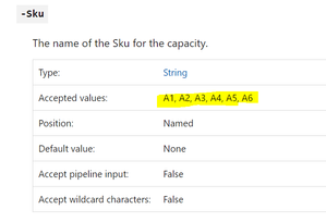 We are using this Cmdlet: https://docs.microsoft.com/en-us/powershell, to Upgrade the SKU to A7 and A8. We are able to scale to A7 from UI as shown below. On trying with PowerShell Cmdlet, we get the below error: Update-AzureRmPowerBIEmbeddedCapacity : Cannot validate argument on parameter 'Sku'. The argument "A7" does not belong to the set "A1,A2,A3,A4,A5,A6" specified by the ValidateSet attribute. Supply an argument that is in the set and then try the command again. At line:70 char:121 + ... -Name $pbiEmbCap.Name -ResourceGroupName $resourceGroupName -Sku $sku + ~~~~ + CategoryInfo : InvalidData: (:) [Update-AzureRmPowerBIEmbeddedCapacity], ParameterBindingValidationException + FullyQualifiedErrorId : ParameterArgumentValidationError,Microsoft.Azure.Commands.PowerBI.UpdateAzurePowerBIEmbeddedCapacity Is it possible to update the parameter set including A7 and A8, so that we can use the same Cmdlet to upgrade the SKU951Views0likes1CommentBug in Get-CMSoftwareUpdateDeploymentStatus cmdlet