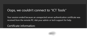 Hello! Recently I've been tasked with enabling profile roaming between two Windows Server 2022 hosts, which are added to the same collection. Both of them are hosting internal developed app. After enabling fslogix on one of them, I've encountered some errors, users getting blocked from logging in. Those are the errors users are getting when trying to log in into the host that uses FSlogix: 1) Failed to acquire mutex for user: EXAMPLE-USER 2) Failed to acquired cleanup session registry lock for user EXAMPLE-USER (SID=S-1-5-21-1715567821-2139871995-725345543-32785) (Elapsed time: 60000) (The wait operation timed out.) User is from different domain that has Forest trust type set to Transitive. We have multiple domains accessing this VM and users from all of them are having the same problems when fslogix enabled on it. User has access to both VM and Azure Storage Account File share when profiles are being saved (both SMB and on Azure portal access) FSLogix policy is set like this: Policy Setting Comment Delete local profile when FSLogix Profile should apply Enabled Policy Enabled Enabled Policy Setting Comment Set Outlook cached mode on successful container attach Disabled Size in MBs Enabled Size in MBs 10000 Policy Setting Comment VHD location Enabled VHD location \\<example>.file.core.windows.net\profiles FSLogix/Profile Containers/Advancedhide Policy Setting Comment Keep local folder after user logs out Disabled Locked VHD retry count Enabled Locked VHD retry count 3 Policy Setting Comment Locked VHD retry interval Enabled Locked VHD retry interval 5 Policy Setting Comment Prevent login with failure Enabled Policy Setting Comment Prevent login with temporary profile Enabled Policy Setting Comment Redirect temporary file folders to local computer Enabled Redirect TEMP, TMP and INetCache to local drive Policy Setting Comment Remove Orphaned OST Files On Logoff Enabled FSLogix/Profile Containers/Container and Directory Naminghide Policy Setting Comment Swap directory name components Enabled Policy Setting Comment Virtual disk type Enabled VHDX Any ideas how to solve it or what might have caused it?4.2KViews1like2CommentsRDS web client thumbprint does not match