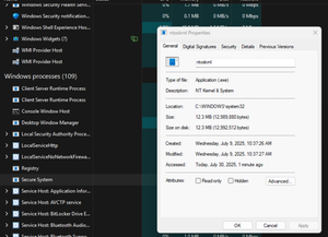 After upgrading the device to Windows 11 24H2, intermittent lag occurs: when the mouse remains stationary for about two minutes, the system freezes for 1-2 seconds before resuming normal operation. Is there a solution for this?34Views0likes1CommentIs the security system of Windows 11 and ntoskrnl functioning normally in Task Manager?