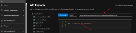 In this blog post, I will explain how to utilize advanced hunting APIs to bypass the 30,000 rows limit in Defender XDR's advanced hunting feature. Before we delve into the topic, let’s understand what is an Advanced Hunting in Defender XDR and what problem we are trying to solve. Advanced Hunting in Defender XDR (Extended Detection and Response) is a powerful feature in Microsoft Defender that allows security professionals to query and analyse large volumes of raw data to uncover potential threats across an organization's environment. It provides a flexible query interface where users can write custom queries using Kusto Query Language (KQL) to search through data collected from various sources, such as endpoints, emails, cloud apps, and more. Key features of Advanced Hunting in Defender XDR include: Custom Queries: You can create complex queries to search for specific activities, patterns, or anomalies across different security data sources. Deep Data Analysis: It allows for deep analysis of raw data, going beyond the pre-defined alerts and detections to identify potential threats, vulnerabilities, or suspicious behaviours that might not be immediately visible. Cross-Platform Search: Advanced Hunting enables users to query across a wide range of data sources, including Microsoft Defender for Endpoint, Defender for Identity, Defender for Office 365, and Defender for Cloud Apps. Automated Response: It supports creating automated response actions based on the findings of advanced hunts, helping to quickly mitigate threats. Integration with Threat Intelligence: You can enrich your hunting queries with external threat intelligence to correlate indicators of compromise (IOCs) and identify malicious activities. Visualizations and Insights: Results from hunting queries can be visualized to help spot trends and patterns, making it easier to investigate and understand the data. Advanced Hunting is a valuable tool for proactive threat detection, investigation, and response within Defender XDR, giving security teams more flexibility and control over the security posture of their organization. Advanced Hunting quotas and service limits To keep the service performant and responsive, advanced hunting sets various quotas and usage parameters (also known as "service limits"). By design, each Advanced Hunting query can fetch up to 30,000 rows. Refer our public documentation for more information about the service limitations in Advanced Hunting. In this blog, we will focus on leveraging Advanced Hunting APIs to bypass the 30,000 rows service limit of Advanced Hunting. Usually when the query result exceeds 30,000 rows it’s recommended to: Try refining/optimizing the query by introducing filters to separate it into distinct segments, and then merge the results into a comprehensive report. Leverage Advanced Hunting API as it can fetch up to 100,000 rows: Advanced Hunting API - Microsoft Defender for Endpoint | Microsoft Learn We’re going to focus on the second approach here. Let's dive deeper into the process of fetching up to 100,000 records using the Advanced Hunting API. Login to Microsoft Defender XDR (https://security.microsoft.com/) Browse to Endpoints > Partners and APIs > API Explorer Submit a POST query along with the JSON with the Advanced Hunting query. POST https://api.securitycenter.microsoft.com/api/advancedqueries/run Let’s take an example of an AH query to fetch details about devices with open CVEs details. Sample Advanced Hunting query: DeviceTvmSoftwareVulnerabilities | join kind=inner ( DeviceTvmSoftwareVulnerabilitiesKB | extend CveId = tostring(CveId) // Cast CveId to string in the second leg of the join | project CveId, VulnerabilitySeverityLevel, CvssScore, PublishedDate, VulnerabilityDescription ) on CveId | project DeviceName, OSPlatform, OSVersion, CveId, VulnerabilitySeverityLevel, CvssScore, PublishedDate, VulnerabilityDescription, RecommendedSecurityUpdate Note: The advanced hunting query in the JSON template should be written in a single line. Let’s see it in action now. My JSON template is as follows: { "Query":"DeviceTvmSoftwareVulnerabilities| join kind=inner (DeviceTvmSoftwareVulnerabilitiesKB | extend CveId = tostring(CveId) | project CveId, VulnerabilitySeverityLevel, CvssScore, PublishedDate, VulnerabilityDescription) on CveId | project DeviceName, OSPlatform, OSVersion, CveId, VulnerabilitySeverityLevel, CvssScore, PublishedDate, VulnerabilityDescription, RecommendedSecurityUpdate" } Execute the query and it returns a response (as shown below) Copy the response; save it as a JSON file locally Use PowerShell to convert JSON to CSV format. For Ex: Following PowerShell script can be used to convert the JSON file to CSV report: Get-Content "<Location of JSON file>" | ConvertFrom-Json | select -Expand Results | ConvertTo-Csv -NoTypeInformation | Out-File "<Location to save CSV file>" -Encoding ASCII The CSV report should have up to 100,000 records. I would also recommend going through the limitations of Advanced Hunting APIs as well: Advanced Hunting API - Microsoft Defender for Endpoint | Microsoft Learn References: Advanced Hunting APIs: Advanced Hunting API - Microsoft Defender for Endpoint | Microsoft Learn Advanced Hunting Overview: Overview - Advanced hunting - Microsoft Defender XDR | Microsoft LearnDetecting and Alerting on MDE Sensor Health Transitions Using KQL and Logic Apps