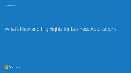 Follow the new https://www.linkedin.com/company/dynamics-365-partner/ and https://www.linkedin.com/company/microsoft-power-platform-partner/ channels now available on LinkedIn! Make sure to follow both pages to stay updated on the latest and greatest Business Applications Partner News, and check out the first posts below: https://www.linkedin.com/company/dynamics-365-partner/: https://www.linkedin.com/feed/update/urn:li:activity:7151194617948901377 https://www.linkedin.com/company/microsoft-power-platform-partner/: https://www.linkedin.com/feed/update/urn:li:activity:7151198674952343552.What’s New and Highlights for Business Applications - December 2023