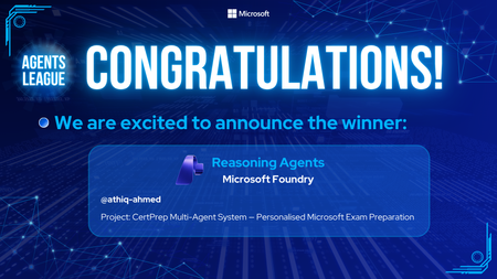 Agents League was designed to showcase what agentic AI can look like when developers move beyond singleâprompt interactions and start building systems that plan, reason, verify, and collaborate. Across three competitive tracksâCreative Apps, Reasoning Agents, and Enterprise Agentsâparticipants had two weeks to design and ship real AI agents using productionâready Microsoft and GitHub tools, supported by live coding battles, community AMAs, and async builds on GitHub. Today, weâre excited to spotlight the winning project for the Reasoning Agents track, built on Microsoft Foundry: CertPrep MultiâAgent System â Personalised Microsoft Exam Preparation by Athiq Ahmed. The Reasoning Agents Challenge Scenario The goal of the Reasoning Agents track challenge was to design a multiâagent system capable of effectively assisting students in preparing for Microsoft certification exams. Participants were asked to build an agentic workflow that could understand certification syllabi, generate personalized study plans, assess learner readiness, and continuously adapt based on performance and feedback. The suggested reference architecture modeled a realistic learning journey: starting from freeâform student input, a sequence of specialized reasoning agents collaboratively curated Microsoft Learn resources, produced structured study plans with timelines and milestones, and maintained learner engagement through reminders. Once preparation was complete, the system shifted into an assessment phase to evaluate readiness and either recommend the appropriate Microsoft certification exam or loop back into targeted remediationâemphasizing reasoning, decisionâmaking, and humanâinâtheâloop validation at every step. All details are available here: agentsleague/starter-kits/2-reasoning-agents at main ¡ microsoft/agentsleague. The Winning Project: CertPrep MultiâAgent System The CertPrep MultiâAgent System is an AI solution for personalized Microsoft certification exam preparation, supporting nine certification exam families. At a high level, the system turns freeâform learner input into a structured certification plan, measurable progress signals, and actionable recommendationsâdemonstrating exactly the kind of reasoned orchestration this track was designed to surface. Inside the MultiâAgent Architecture At its core, the system is designed as a multiâagent pipeline that combines sequential reasoning, parallel execution, and humanâinâtheâloop gates, with traceability and responsible AI guardrails. The solution is composed of eight specialized reasoning agents, each focused on a specific stage of the learning journey: LearnerProfilingAgent â Converts freeâtext background information into a structured learner profile using Microsoft Foundry SDK (with deterministic fallbacks). StudyPlanAgent â Generates a weekâbyâweek study plan using a constrained allocation algorithm to respect the learnerâs available time. LearningPathCuratorAgent â Maps exam domains to curated Microsoft Learn resources with trusted URLs and estimated effort. ProgressAgent â Computes a weighted readiness score based on domain coverage, time utilization, and practice performance. AssessmentAgent â Generates and evaluates domainâproportional mock exams. CertificationRecommendationAgent â Issues a clear âGO / CONDITIONAL GO / NOT YETâ decision with remediation steps and nextâcert suggestions. Throughout the pipeline, a 17ârule Guardrails Pipeline enforces validation checks at every agent boundary, and two explicit humanâinâtheâloop gates ensure that decisions are made only when sufficient learner confirmation or data is present. CertPrep leverages Microsoft Foundry Agent Service and related tooling to run this reasoning pipeline reliably and observably: Managed agents via Foundry SDK Structured JSON outputs using GPTâ4o (JSON mode) with conservative temperature settings Guardrails enforced through Azure Content Safety Parallel agent fanâout using concurrent execution Typed contracts with Pydantic for every agent boundary AI-assisted development with GitHub Copilot, used throughout for code generation, refactoring, and test scaffolding Notably, the full pipeline is designed to run in under one second in mock mode, enabling reliable demos without live credentials. User Experience: From Onboarding to Exam Readiness Beyond its backend architecture, CertPrep places strong emphasis on clarity, transparency, and user trust through a wellâstructured frontâend experience. The application is built with Streamlit and organized as a 7âtab interactive interface, guiding learners stepâbyâstep through their preparation journey. From a userâs perspective, the flow looks like this: Profile & Goals Input Learners start by describing their background, experience level, and certification goals in natural language. The system immediately reflects how this input is interpreted by displaying the structured learner profile produced by the profiling agent. Learning Path & Study Plan Visualization Once generated, the study plan is presented using visual aids such as Ganttâstyle timelines and domain breakdowns, making it easy to understand weekly milestones, expected effort, and progress over time. Progress Tracking & Readiness Scoring As learners move forward, the UI surfaces an examâweighted readiness score, combining domain coverage, study plan adherence, and assessment performanceâhelping users understand why the system considers them ready (or not yet). Assessments and Feedback Practice assessments are generated dynamically, and results are reported alongside actionable feedback rather than just raw scores. Transparent Recommendations Final recommendations are presented clearly, supported by reasoning traces and visual summaries, reinforcing trust and explainability in the agentâs decisionâmaking. The UI also includes an Admin Dashboard and demoâfriendly modes, enabling judges, reviewers, or instructors to inspect reason